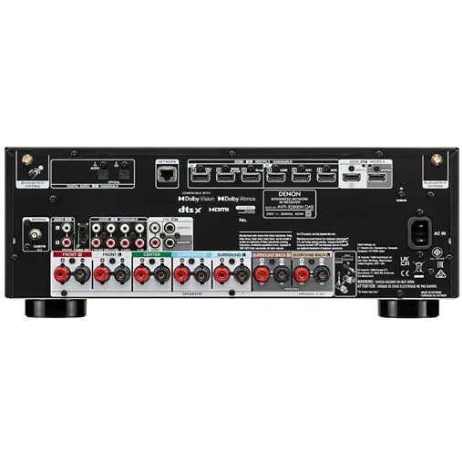 - Type d’entrées : 4 entrées stéréo (RCA), 2 entrées optiques, 1 entrée phono, 2 sorties subwoofer, 1 prise casque (en façade)