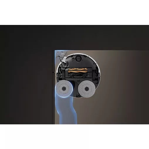 - Serpillère déportée : le robot est capable de nettoyer plus efficacement les angles et bords des murs en déployant sa serpillière vers l’extérieur.