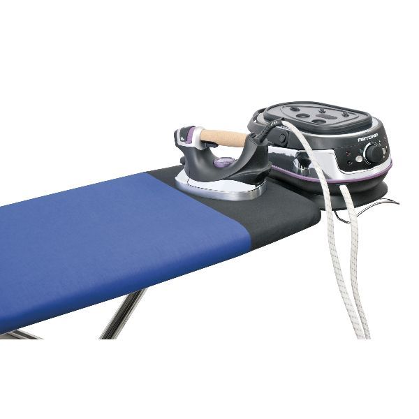 Table à repasser 123 x 48 cm – Grande surface de repassage 123 x 48 cm – Housse comprenant une partie ignifugée (tissu technologique) vous permettant de poser à plat votre fer chaud en toute sécurité en cours de repassage pour plus de confort d’utilisation – Mousse alvéolaire pour un confort de repassage optimal – Housse bordée d’une bande de tissu élastique avec cordelette incorporée assurant une mise en place facile et une finition soignée – Repose fer doté d’encoches spéciales pour suspendre vos cintres : très pratique pour les séances de défroissage vertical – Repose fer robuste, coulissant et polyvalent pouvant accueillir une centrale vapeur ou un fer classique – Traitement anti-corrosion pour une durée de vie accrue – Plateau ajouré pour une circulation optimale de la chaleur – Pieds équipés d’embouts réglables pour une parfaite stabilité – Encombrement minimal une fois la table repliée (152 x 54 x 10 cm), pour un rangement facile – Hauteur réglable 8 positions pour s’adapter à votre taille, hauteur maxi 94 cm – Housse molletonnée bleue, mousse 6 mm – Plateau en métal déployé laqué époxy – Garantie 2 ans.