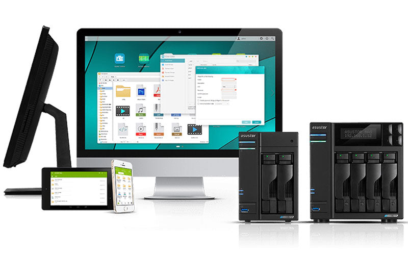 Les serveurs NAS ASUSTOR prennent en charge Windows, macOS, et d’autres périphériques avec un navigateur web ainsi que des protocoles de partage de fichiers multiplateformes, comme Samba, AFS et NFS. ASUSTOR fournit aussi des programmes pour les bureaux de Windows et macOS pour rendre l’accès et la configuration d’un NAS plus facile que jamais. ADM prend en charge jusqu’à 4096 comptes, dont 512 sont accessibles simultanément.
