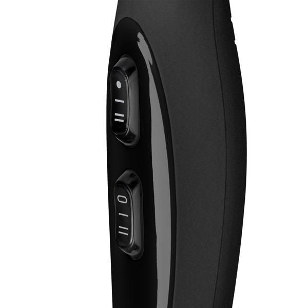 Sèche-cheveux – Pro Silence – Performances professionnelles à la maison ! – Équipé d’un moteur professionnel AC, fabriqué en Italie, ce sèche-cheveux Pro Silence Volume 2200, vous garantit performance et une durée de vie 5 fois plus longue qu’un sèche-cheveux classique – Séchage et mise en forme rapide – Des cheveux doux et brillants sans frisottis avec la fonction ionique – Vitesse d’air 110 km/h – 2 vitesses / 3 températures – Position air froid pour fixer la coiffure : coiffure longue tenue – Technologie Ionic – Équipé d’un diffuseur professionnel pour de belles boucles naturelles – Concentrateur ultra-fin de 6 mm pour un brushing précis et d’un filtre arrière amovible pour un entretien facile – Cordon alimentation de 1,80 m – Anneau de suspension pour un rangement facile – Coloris Noir – Puissance 2200 W – Garantie 5 ans.