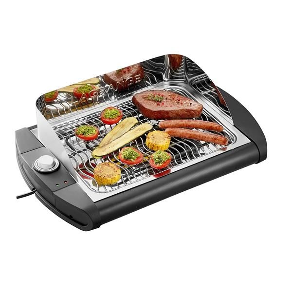 Barbecue Pavillon de table – Grâce à l’utilisation de matériaux nobles comme l’inox, le barbecue est non seulement décoratif mais aussi très robuste – Large grille de cuisson 40 x 28 cm, ondulée permettant de cuire des aliments fragiles ou de petite taille (légumes, poissons..) sans qu’ils passent à travers la grille – Thermostat réglable – Voyant de contrôle de fonctionnement – Bac à réserve d’eau en acier inoxydable – Pare vent inox de 9 cm de hauteur – Entièrement démontable pour un entretien facile – Bac, grille de cuisson et pare vent passent au lave-vaisselle – Livré avec un pic à viandes en inox – Coloris Inox – Puissance 2300 W – Garantie 2 ans + 1 an supplémentaire offert en s’inscrivant sur le site Lagrange.