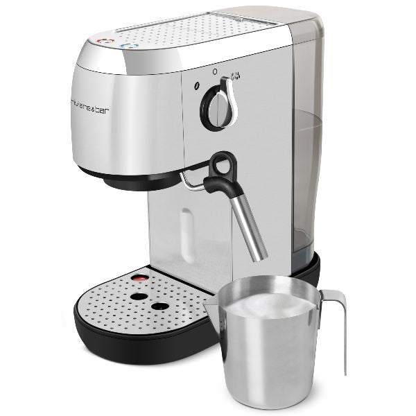 Expresso compact Inox – Un concentré de performances à portée de tasse ! – Compacte et design avec seulement 14 cm de largeur – 3 fonctions : Expresso, Eau chaude et Vapeur – Boutons de commande rétro-éclairés – Personnalisation de votre boisson : préparations variées du café ristretto 20 ml au mug de café de 300 ml – Pré-humidification de la mouture pour une libération optimale des arômes – Contrôle électronique de la température – Buse eau chaude / vapeur articulée sur tête sphérique – Embout spécial Cappuccinos amovible en inox – Porte-filtre avec tasse mouture et 2 filtres  »Spécial Crème » (1 tasse et 2 tasses) avec chambre de pressurisation pour un café crémeux – Compatible café moulu et dosettes papier souples ESE – Livrée avec 1 cuillère doseuse – Grille-égouttoir inox – Plateau chauffe-tasses – Hauteur sous bec 95 mm – Réservoir d’eau amovible de 1.4 L – Compartiment de rangement des accessoires – Arrêt automatique après 20 minutes – Unité de chauffe à tubulure inox – Mise en chauffe rapide – Température idéale et constante – En inox satiné et dessus finition chrome – 19 bars – Puissance 1400 W – Garantie 2 ans.