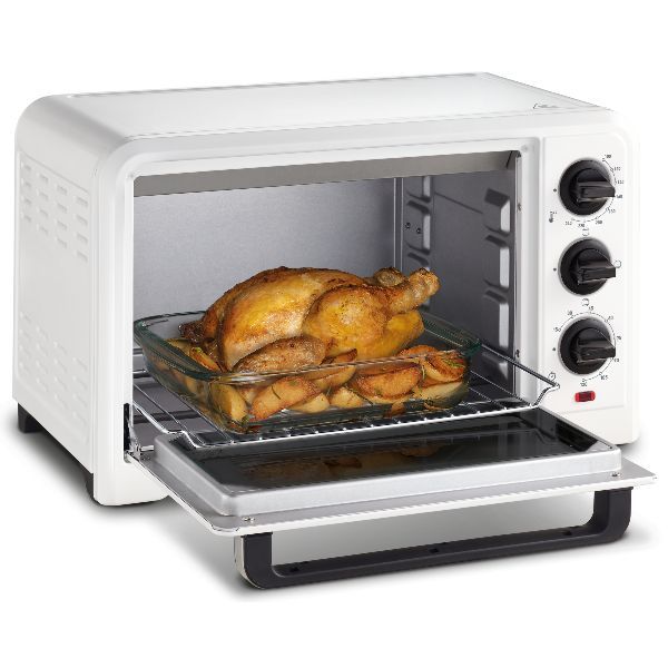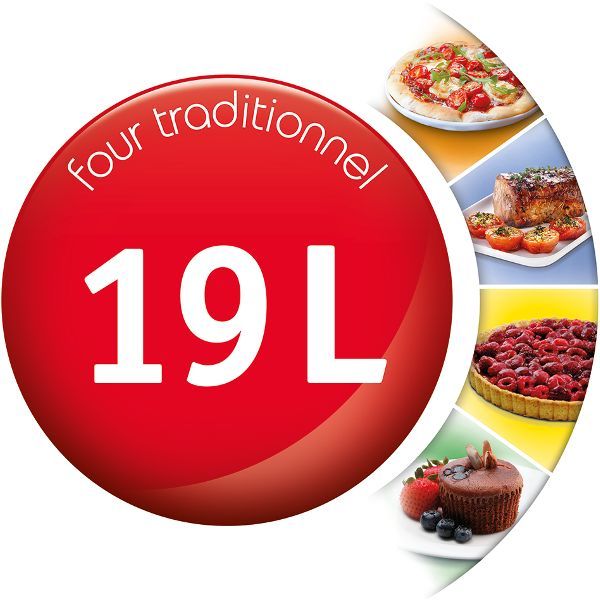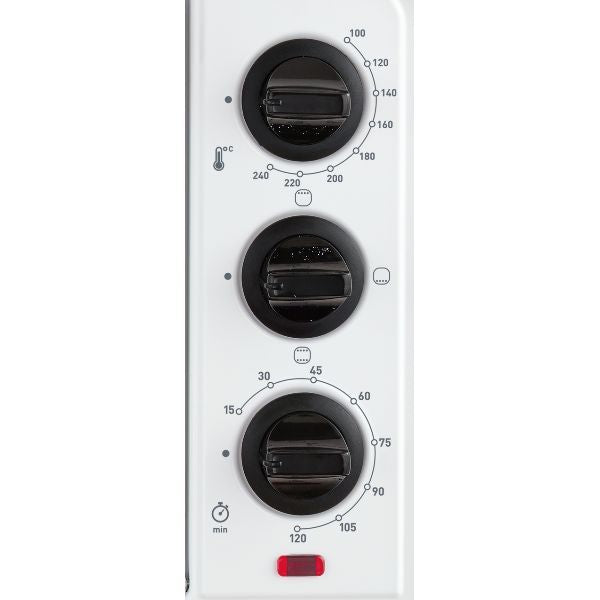 Mini four Optimo 19 L avec programmation mécanique – Ce four s’intègrera facilement dans votre cuisine avec son corps blanc et sa poignée silver ! – Ses 3 modes de cuisson et son thermostat réglable jusqu’à 240°C vous permettront de réaliser tous types de recettes ! – 3 modes de cuisson : Chaleur conventionnelle pour les viandes, les tartes ou les quiches, Grill pour dorer et gratiner vos préparations, Bain-Marie pour réaliser vos verrines et fondants – Thermostat réglable jusqu’à 240°C – Minuterie 120 minutes – Porte en verre double-paroi – Grille réversible positionnable sur 3 hauteurs – Témoin lumineux – Dimensions intérieures 32.5 x 24.5 x 22.6 cm – Dimensions 46,2 x 27,91 x 31,87 cm – Coloris : Blanc & Silver – Grill 740 W – Puissance 1380 W – Garantie 2 ans.