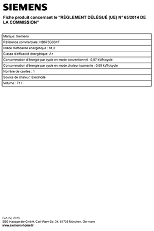 Ce four Siemens HB675G0S1 INOX est doté d’une très grande capacité de 71 litres, idéal pour les familles nombreuses !