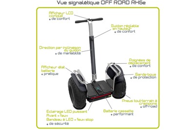 Le OffRoad RX5e utilise une technique gyroscopique* offrant une grande facilité d’utilisation, de simples balancements en avant ou en arrière permettent une mobilité intuitive et dynamique.