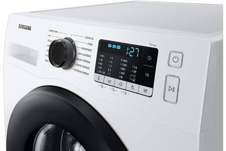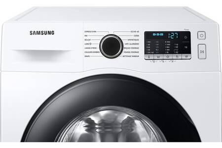 Le lave-linge Samsung WW80TA046AE blanc avec contour hublot noir, d’une capacité de 8 kg est doté 13 programmes dont 2 programmes Vapeur, d’une Technologie Ecobubble qui transforme la lessive en mousse ultra-performante, même à basse température et d’une option Anti-tache.