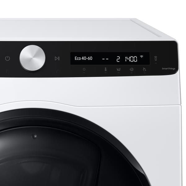 Lave-linge séchant – Grâce à son intelligence artificielle et son interface réduite à l’essentiel, son panneau de contrôle vous facilite la vie : programmes les plus utilisés, réglages préférés, description de chaque programme… – 19 programmes dont Express 15 min (2 kg), Laine et AirWash – Lavage et Séchage enchaîné – 2 programmes dédiés utilisant la vapeur pour éliminer 99,9% des bactéries : Draps et Anti-allergène – Options Prélavage, Lavage Intensif, Anti-tache, Temps de séchage et Prêt à ranger – Technologie Speed Spray : jet d’eau additionnel aspergeant le linge par le dessus au moment du rinçage – Hublot additionnel AddWash : ajoutez du linge à tout moment en cours de cycle – Technologie EcoBubble : grâce à son système innovant d’injection d’air, elle transforme la lessive en mousse ultra-performante, même à basse température, pour une efficacité de lavage maximale – Moteur Digital Inverter robuste et silencieux – Tambour 47 litres – Connecté WiFi avec l’application SmartThings qui vous simplifie le cycle de lavage grâce à ses fonctionnalités intuitives : Assistant choix programme, Planificateur, Diagnostic utilisation… – Fin différée jusqu’à 19 heures – Affichage du temps restant – Détecteur anti-mousse – Sécurités enfants – Conso Lavage ( 7kg) : 0,69 kWh / 45 L – Conso Lavage + séchage (4kg) : 2,67 kWh / 70 L.
