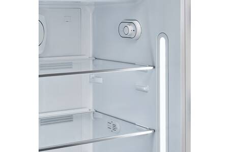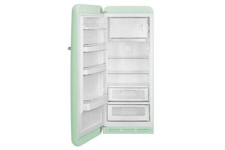 Le réfrigérateur vintage Smeg FAB28LPG5 Vert d’eau, vous replonge dans les années 50 avec son design élégant aux formes arrondies.