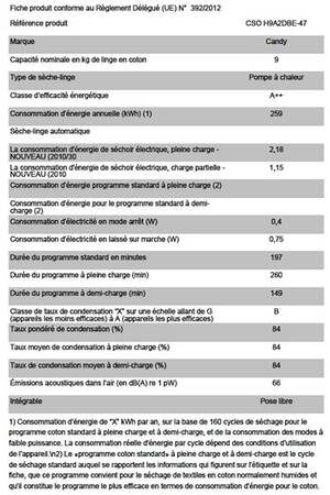 6 avis pour Sèche linge Candy Cso H9a2dbe-47