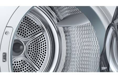Le système de tambour exclusif garantit un flux d’air permanent et une température constante. Les aubes en forme de vagues brassent l’air chaud, répartissant ainsi le linge plus délicatement et plus efficacement dans le grand volume du tambour. Grâce à la nouvelle structure du tambour qui ménage le linge, celui-ci glisse sur le tambour comme s’il flottait sur un coussin d’air.